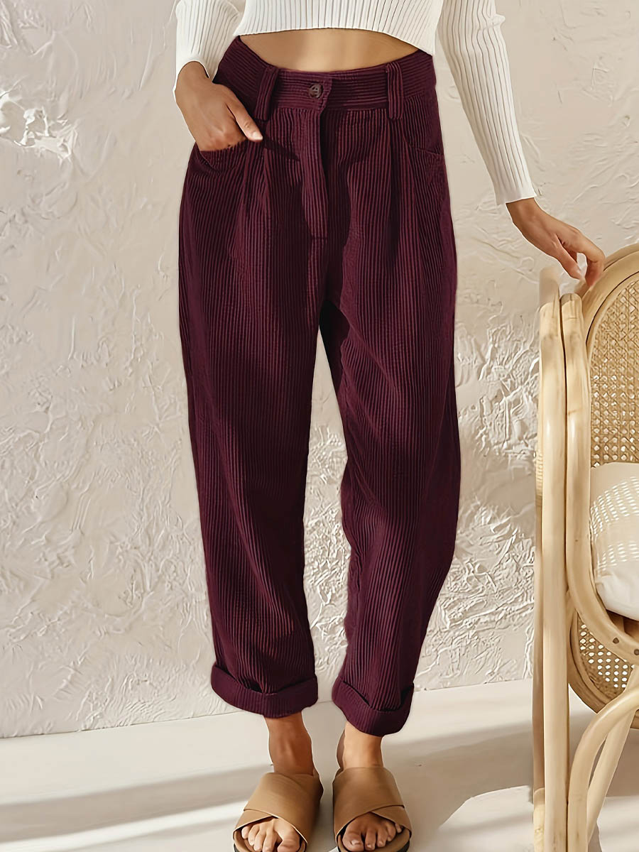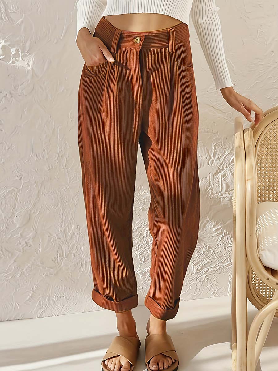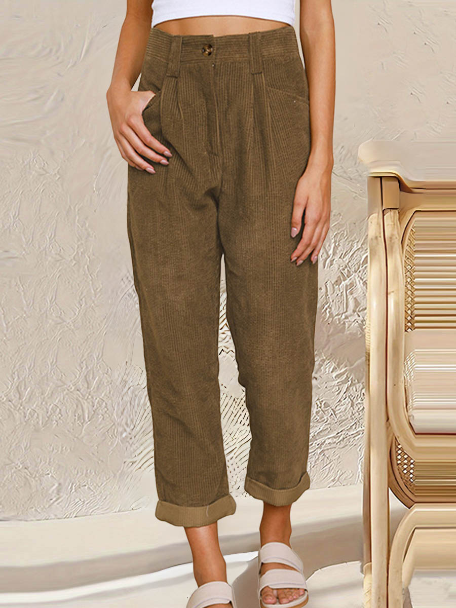 Adicione um toque de sofisticação descontraída e charme retrô ao seu guarda-roupa com esta calça de veludo cotelê. Com modelagem levemente afunilada e barras dobradas, ela combina estilo contemporâneo com o aconchego de um tecido clássico. O veludo cotelê macio oferece textura e conforto, tornando esta peça ideal para os dias mais frescos ou para quem busca um visual elegante e casual.
