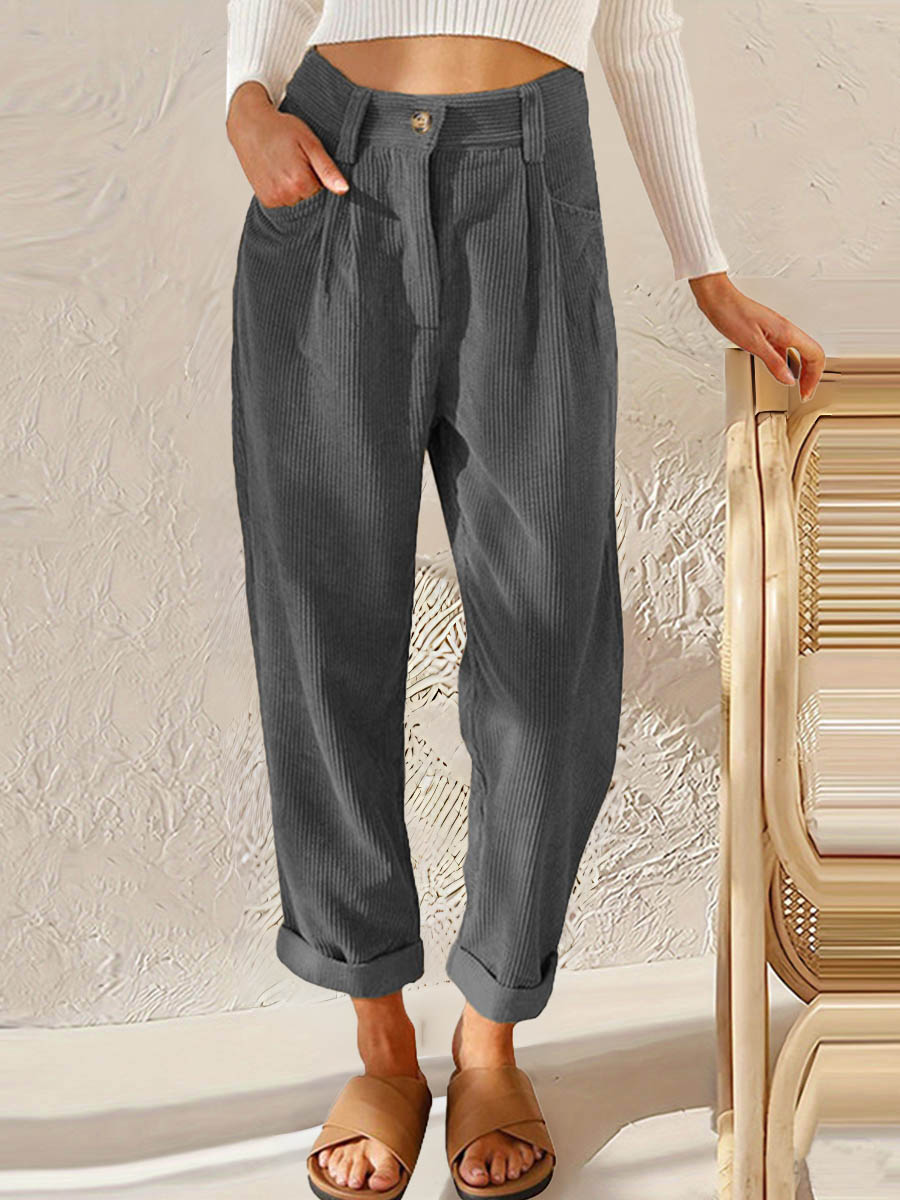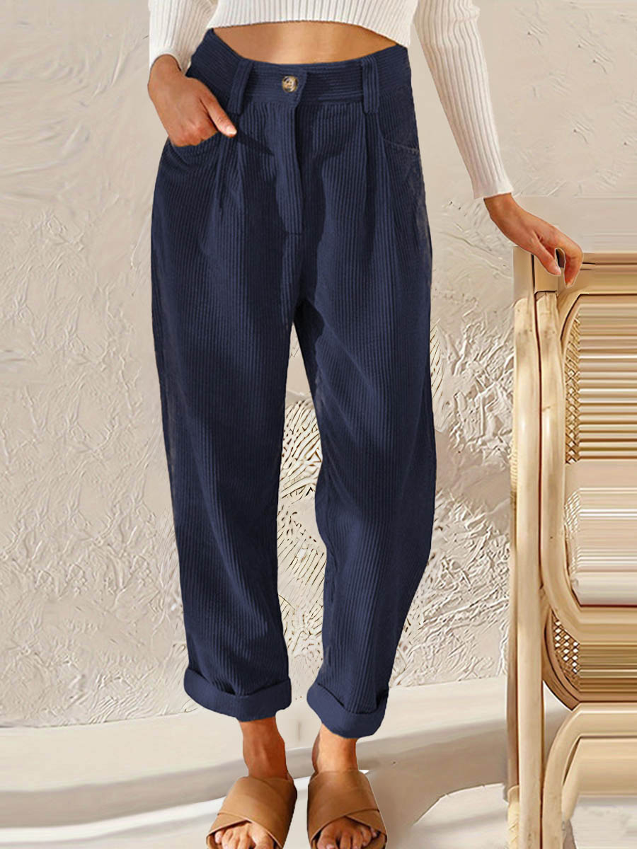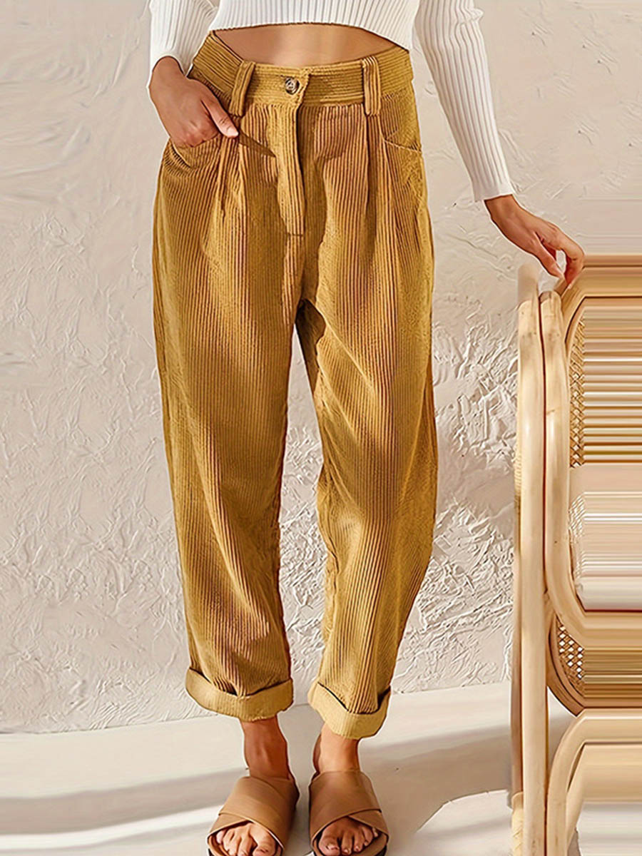 Adicione um toque de sofisticação descontraída e charme retrô ao seu guarda-roupa com esta calça de veludo cotelê. Com modelagem levemente afunilada e barras dobradas, ela combina estilo contemporâneo com o aconchego de um tecido clássico. O veludo cotelê macio oferece textura e conforto, tornando esta peça ideal para os dias mais frescos ou para quem busca um visual elegante e casual.